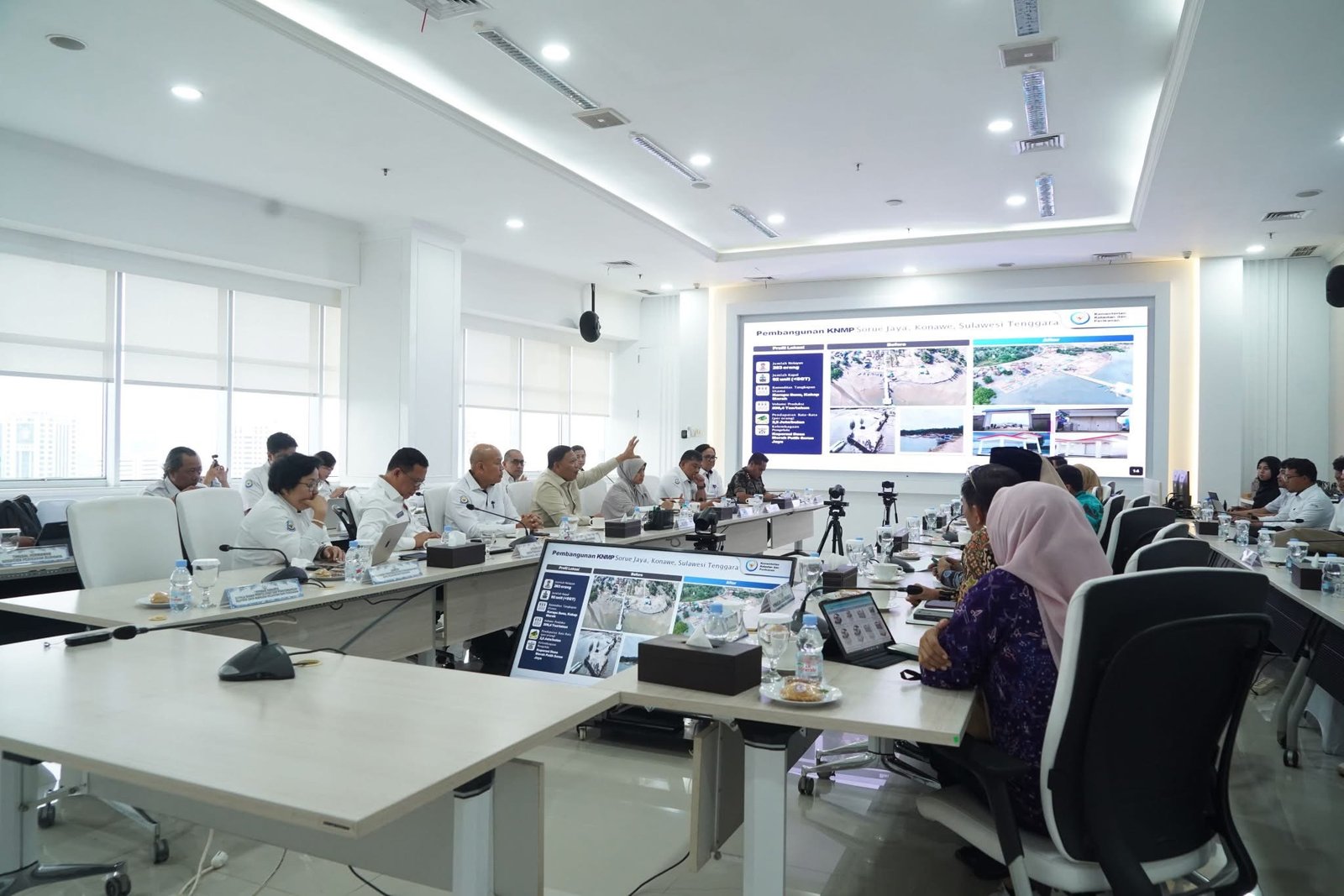 Gubernur Andi Sumangerukka diterima langsung oleh Wakil Menteri KKP, Laksamana Madya TNI (Purn) Dr. Didit Herdiawan, M.P.A., M.B.A. Pertemuan ini membahas agenda strategis, yakni koordinasi persiapan peresmian Kampung Nelayan Merah Putih (KNMP) di Desa Sorue Jaya, Kecamatan Soropia, Kabupaten Konawe, serta meminta dukungan KKP dalam pengembangan potensi maritim yang dimiliki Sultra.